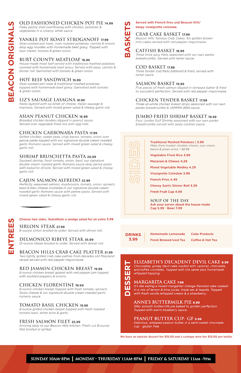Beacon Hills’ famous Crab Cakes. Six golden brown mini cakes served with red pepper mayonnaise.